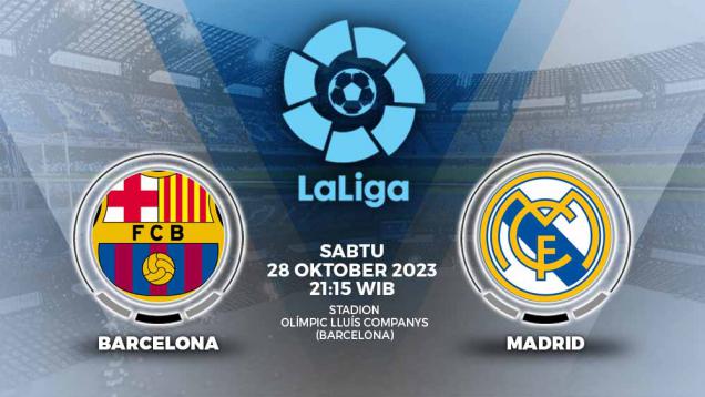 INDOSPORT.COM – Prediksi Liga Spanyol 2023-2024 antara Barcelona vs Real Madrid, yang tersaji di Estadi Olimpic Lluis Companys, Sabtu (28/10/23), pukul 21.15 WIB.